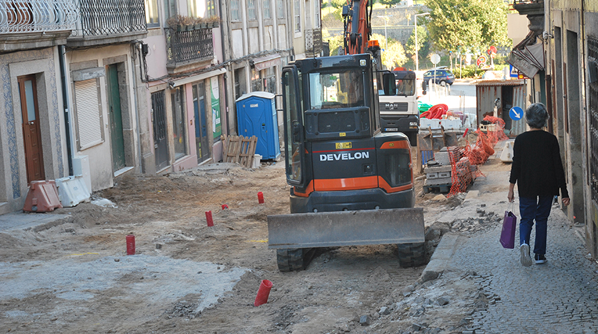 A obra de requalificação pedonal em Barcelinhos, e...